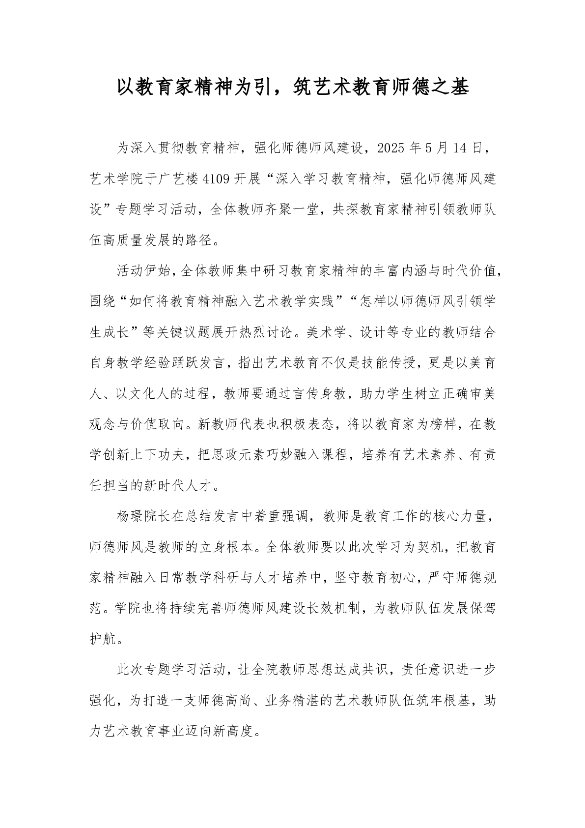 以教育家精神为引筑艺术教育师德之基