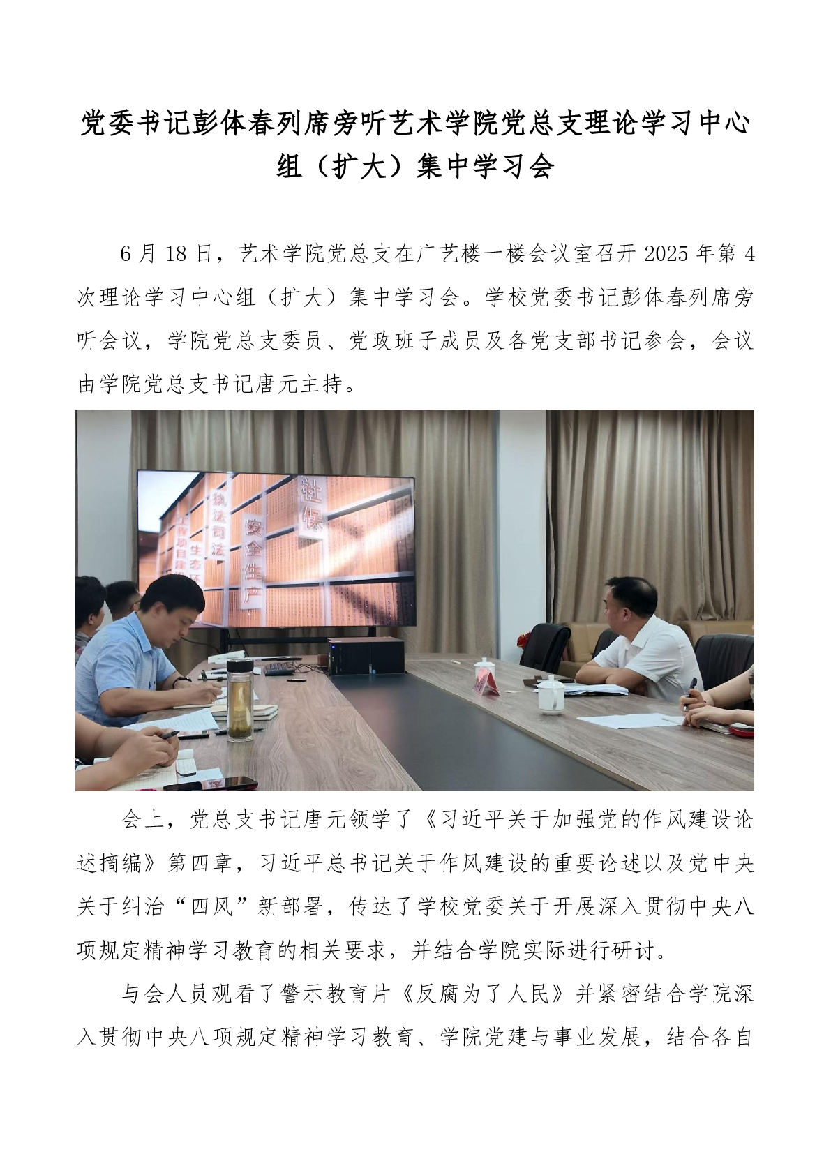 党委书记彭体春列席旁听艺术学院党总支理论学习中心组