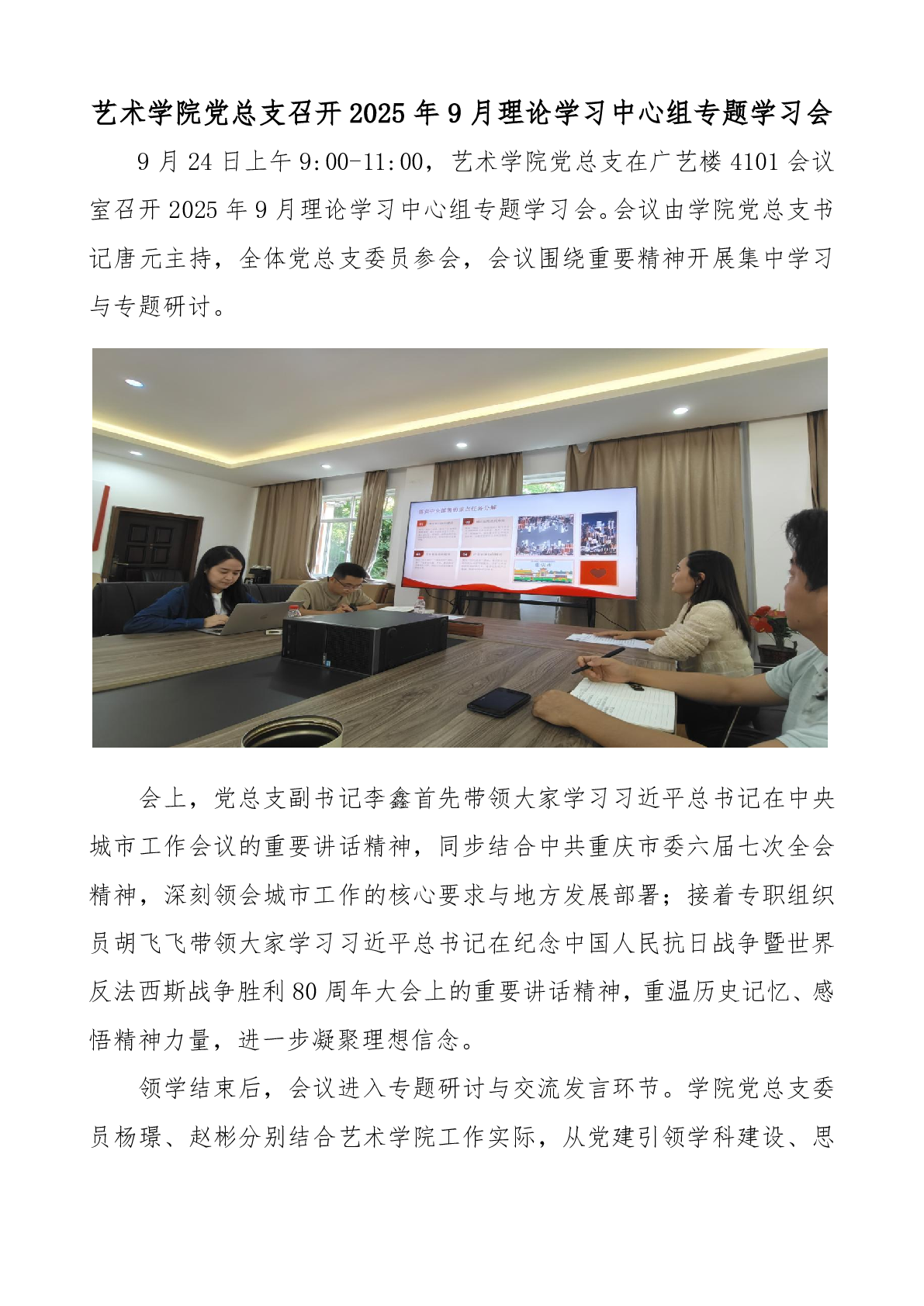 艺术学院党总支召开2025年9月理论学习中心组专题学习会