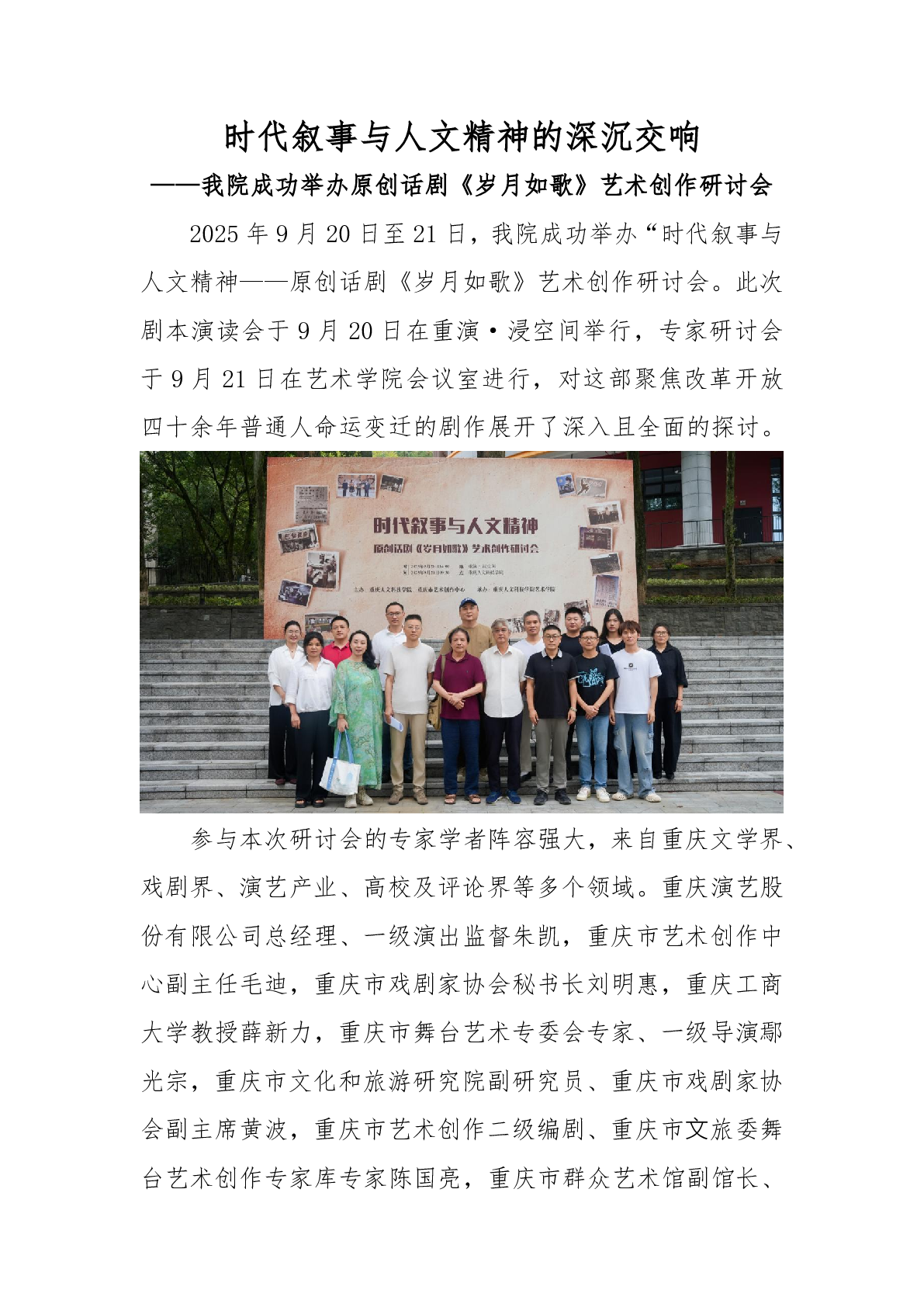 时代叙事与人文精神的深沉交响——我院成功举办原创话剧《岁月如歌》艺术创作研讨会