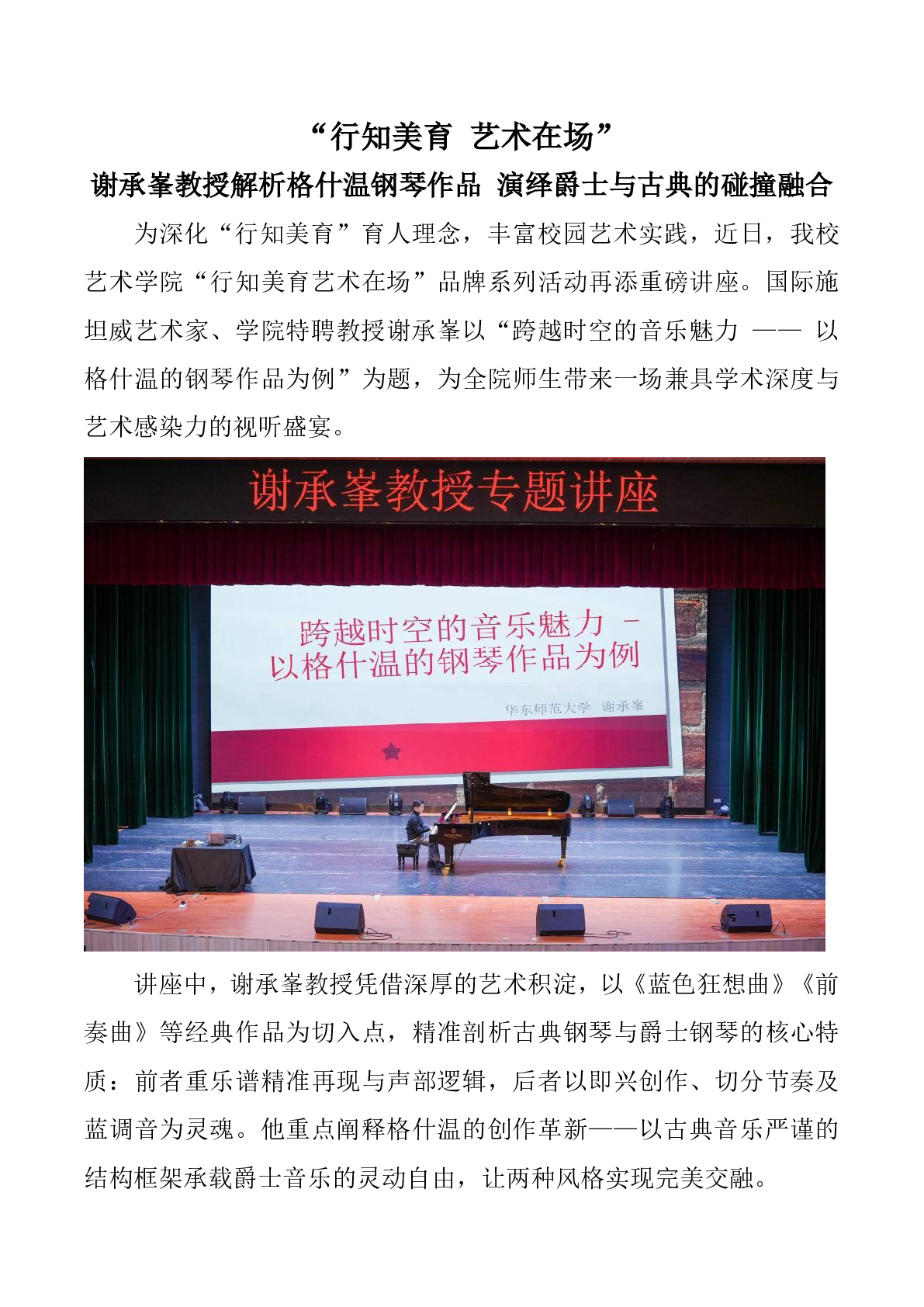 行知美育 艺术在场 谢承峯教授解析格什温钢琴作品 演绎爵士与古典的碰撞融合