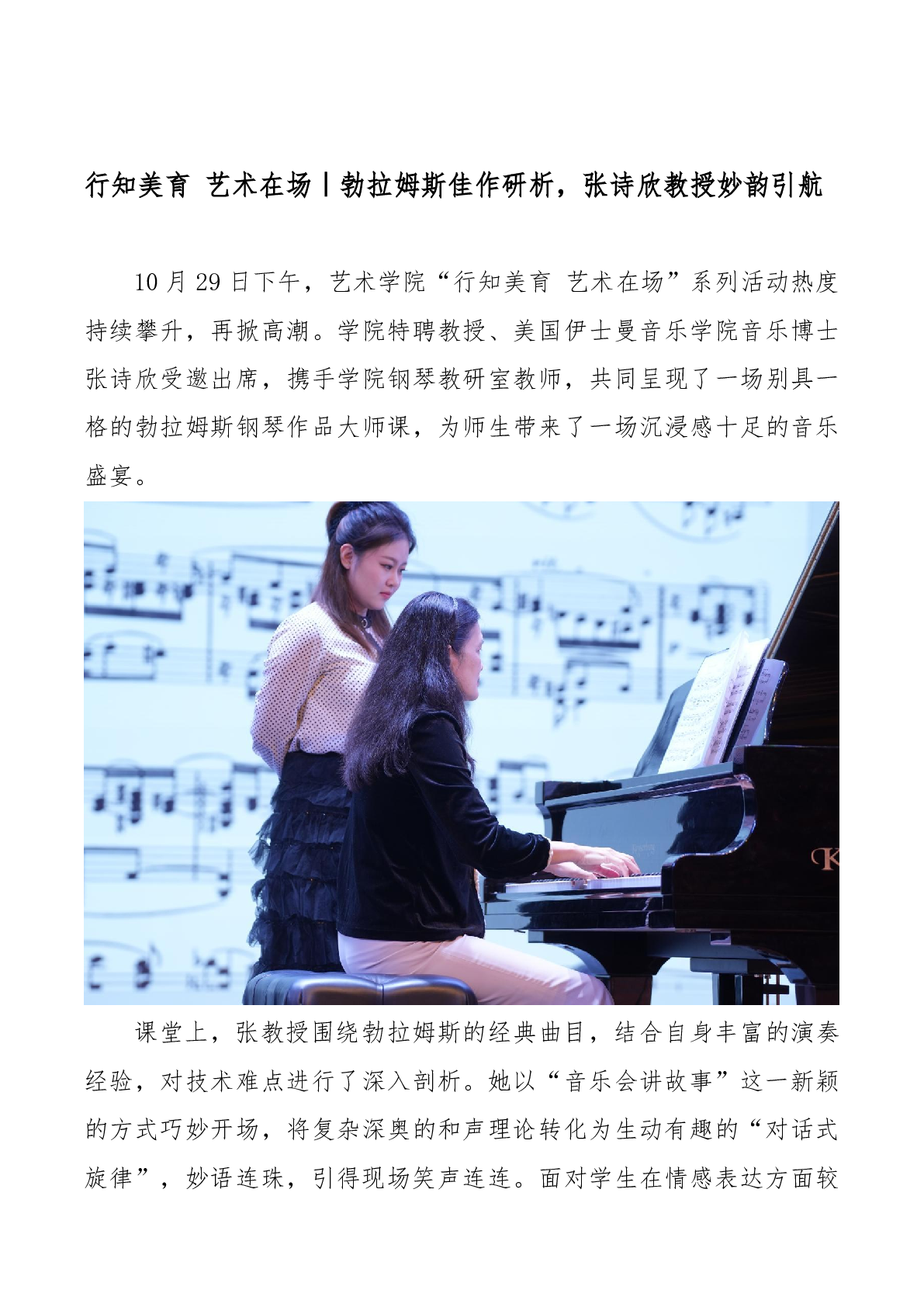 行知美育 艺术在场勃拉姆斯佳作研析,张诗欣教授妙韵引航