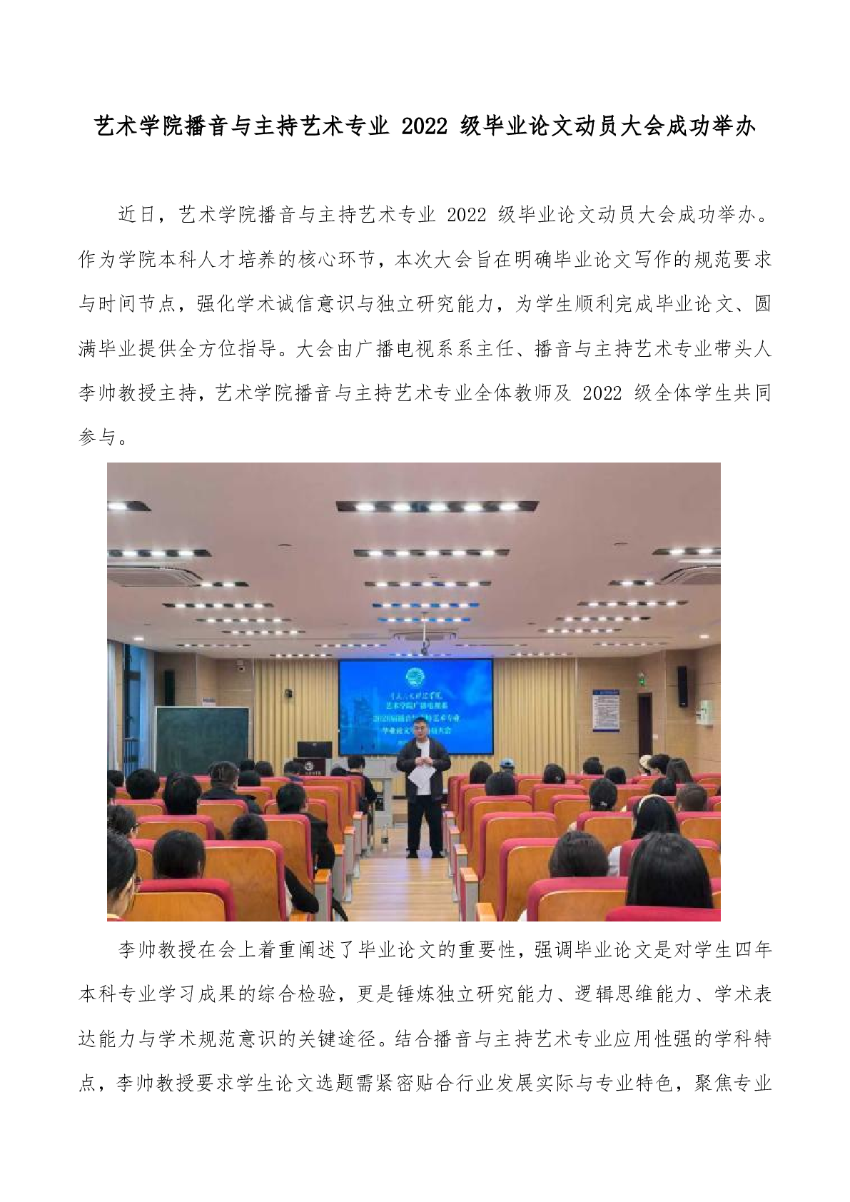 艺术学院播音与主持艺术专业 2022 级毕业论文动员大会成功举办
