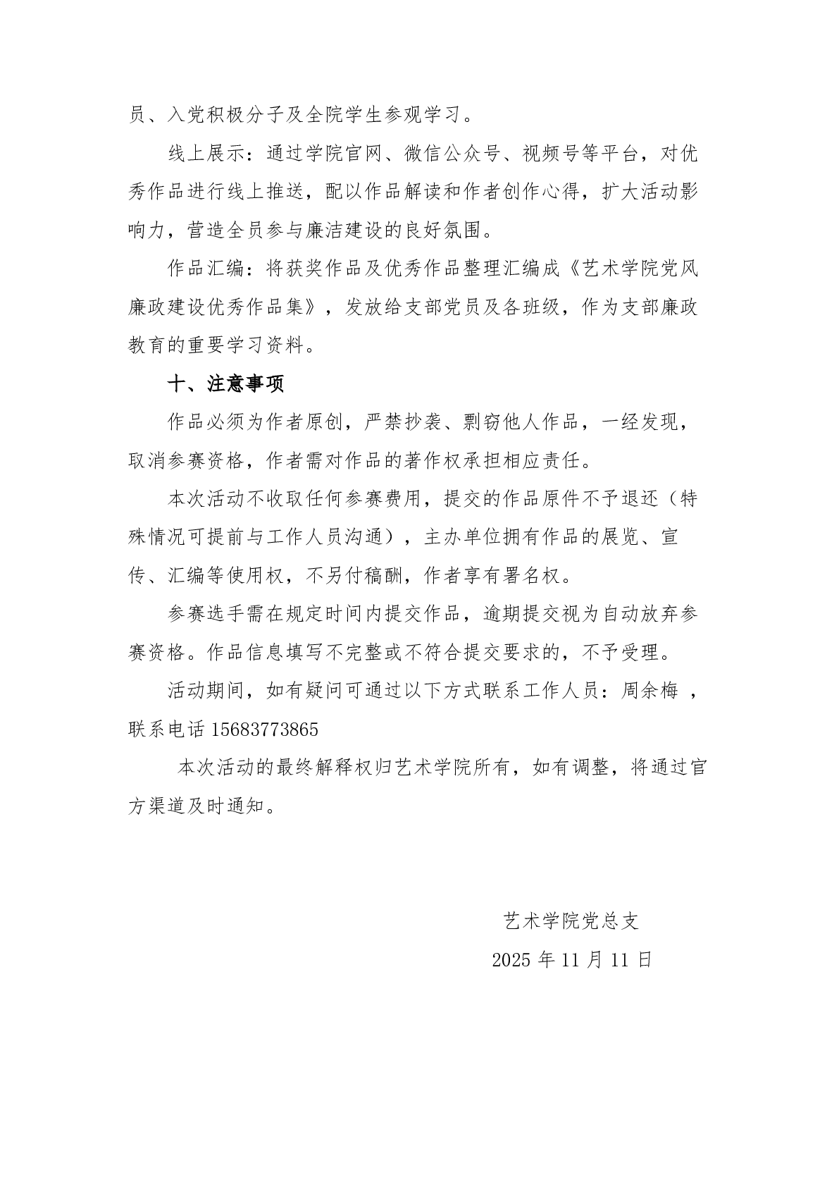 艺术学院党风廉政建设艺术作品征集活动