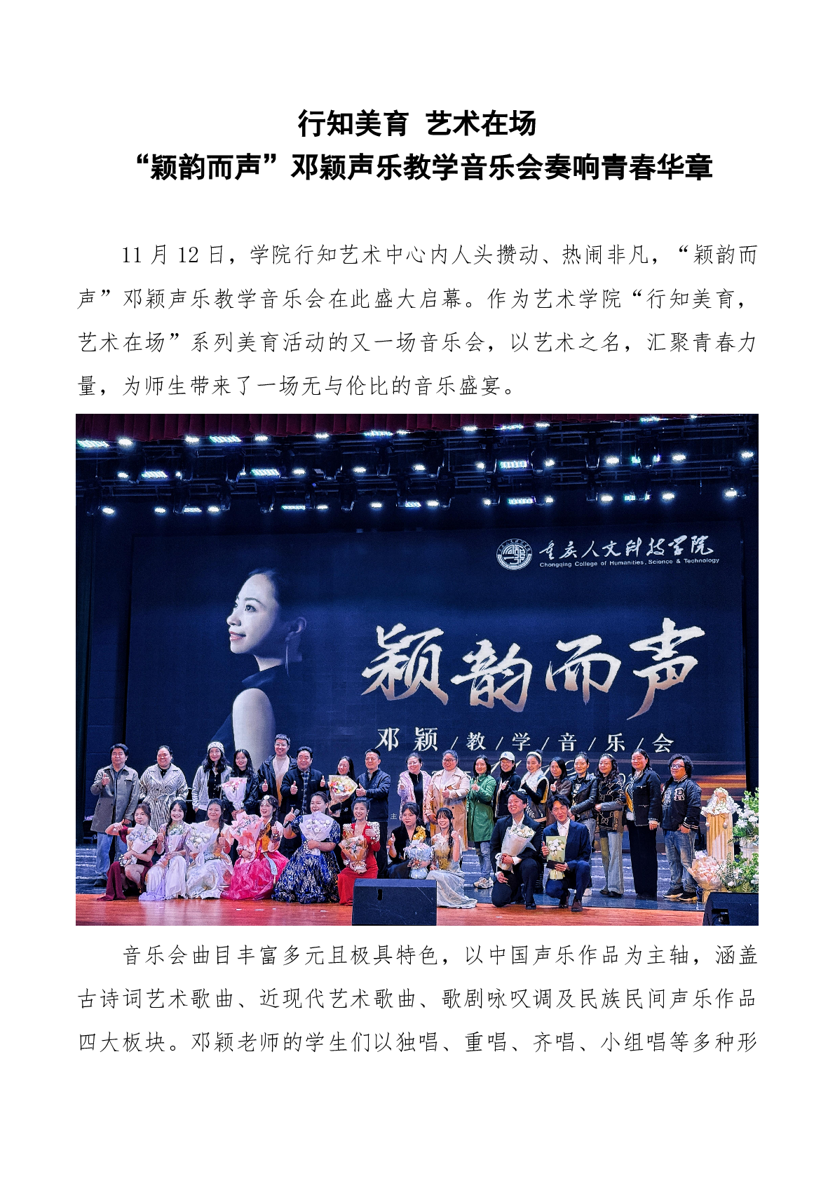 行知美育 艺术在场 “颖韵而声”邓颖声乐教学音乐会奏响青春华章