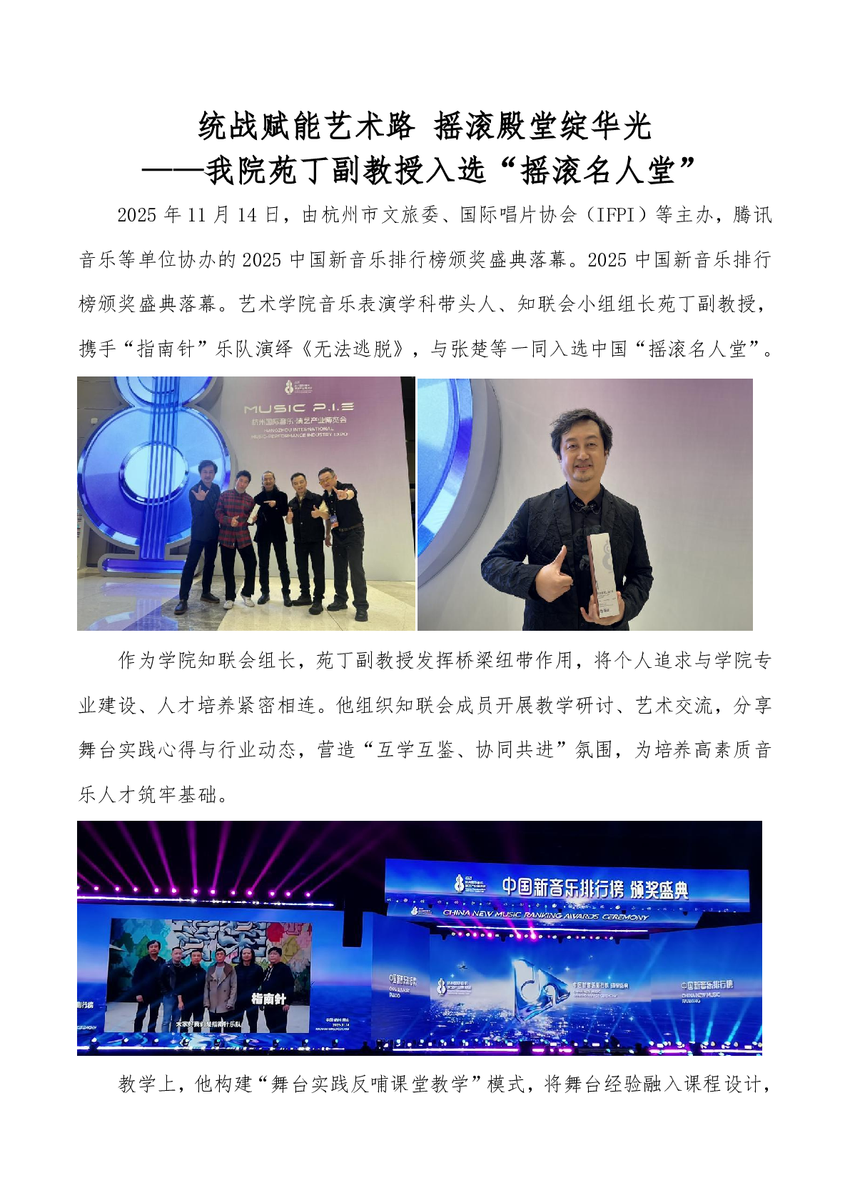 统战赋能艺术路 摇滚殿堂绽华光——我校苑丁副教授入选“摇滚名人堂”