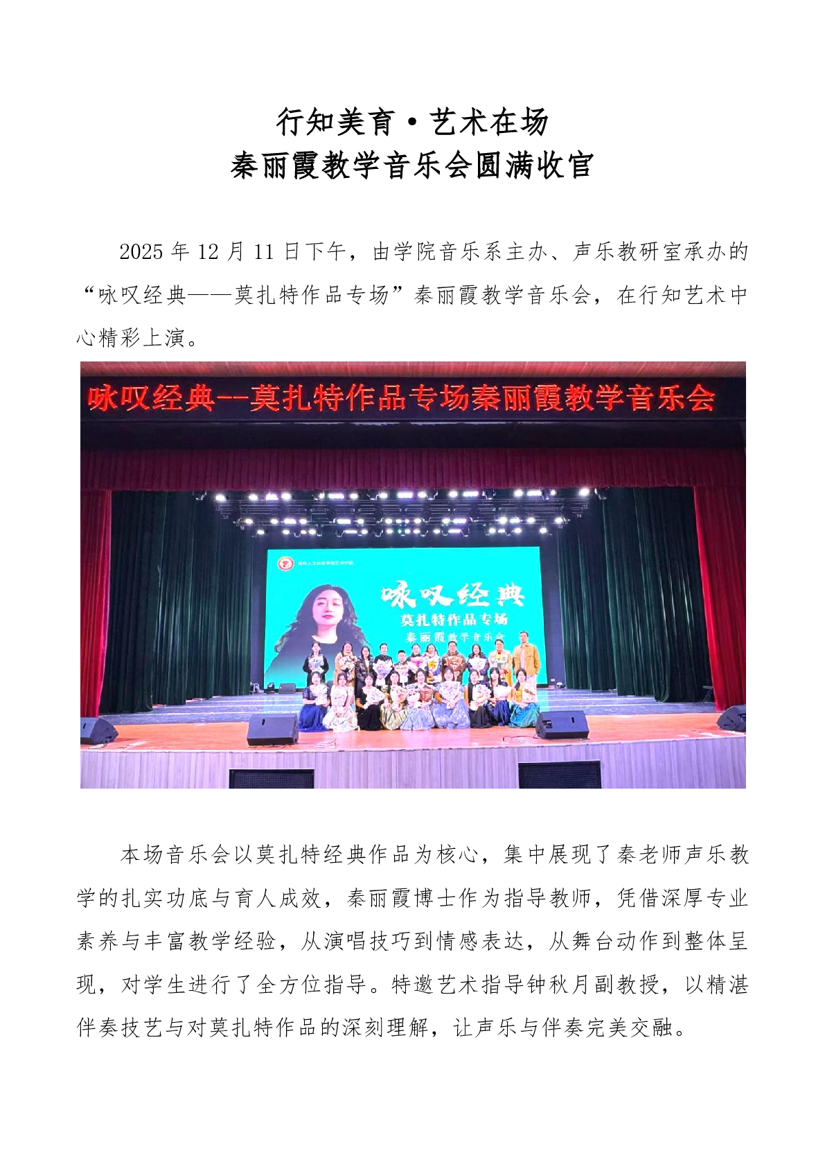 行知美育艺术在场秦丽霞教学音乐会圆满收官