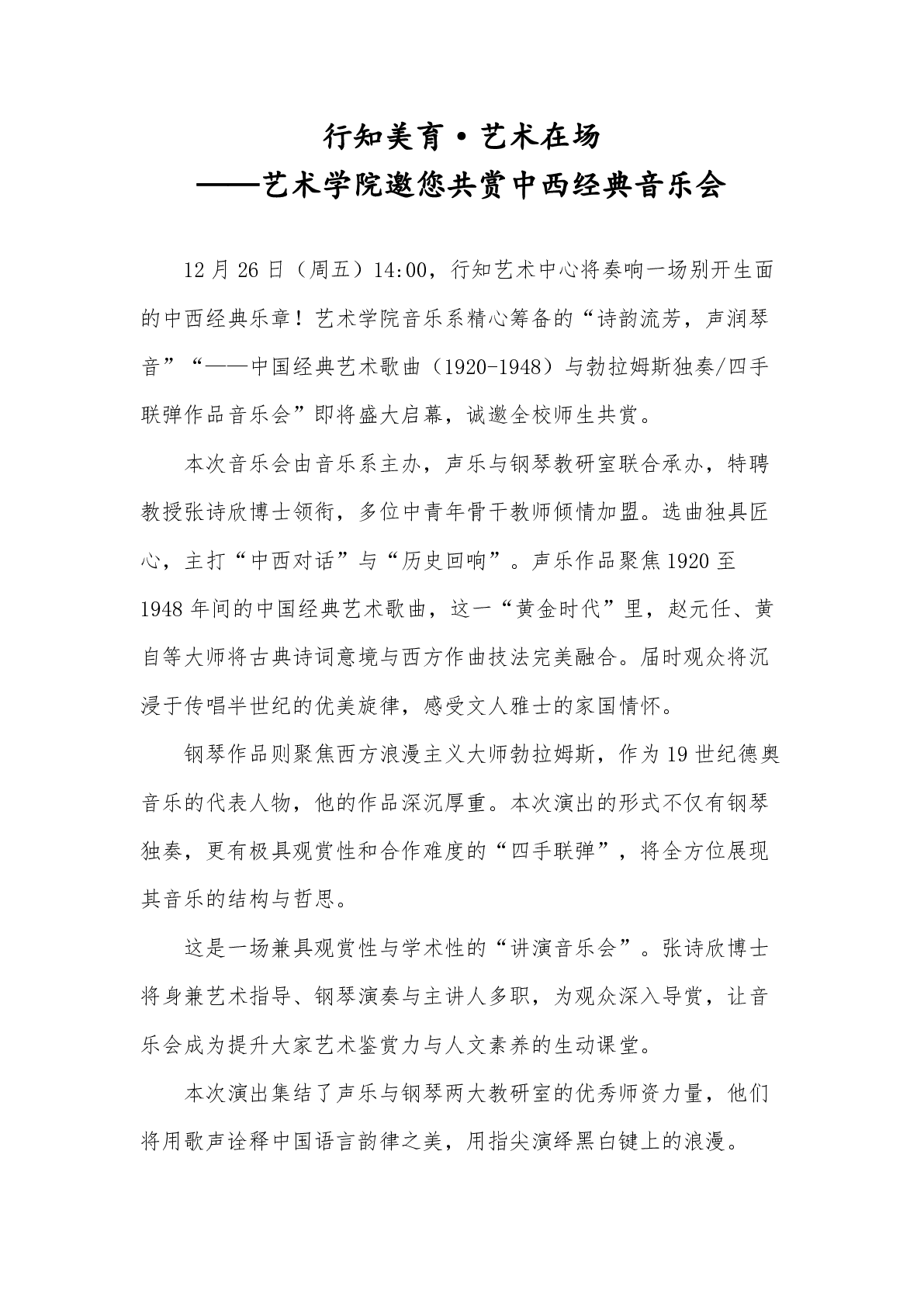 行知美育·艺术在场艺术学院邀您共赏中西经典音乐会