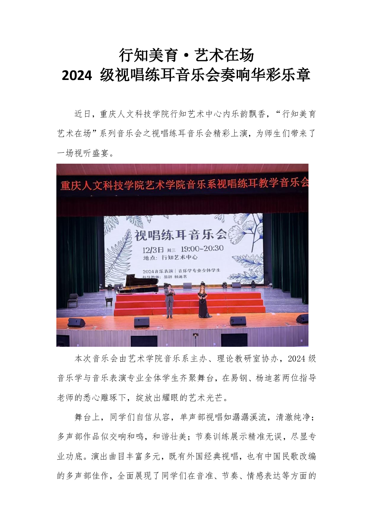 行知美育·艺术在场2024级视唱练耳音乐会奏响华彩乐章